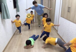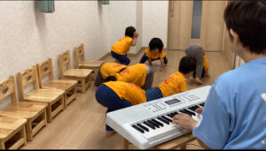 このように楽しみながらリズム感や知覚能力を高めるアクティビティ。