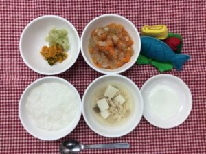 0歳児さんはお休みの為、給食のご提供はお休みとなります。