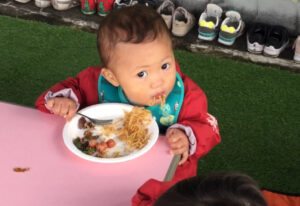 当園では、「食べる意欲を育む」ことを根底に「食べる」ことがお仕事といっても過言ではないと思っております。大事な乳児期、ミルクの終了を急がずに、たくさん食べ、栄養をしっかり摂れるよう、一人ひとりの生活リズムに合わせたミルクの提供、食事の介助を行なっています。また、幼児食を食べれるようになった1歳児さん、2歳児さんは自分で食べれることの喜び、いろいろな食材への興味や嗜好の変化が見られます👍