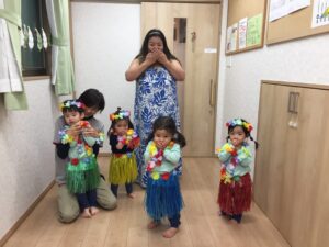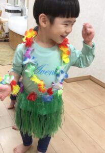 フラダンス衣装がとてもお好きな様子のお友だち😊