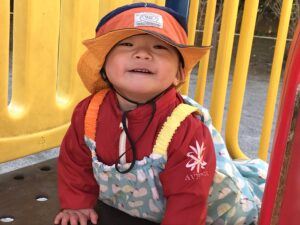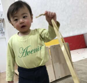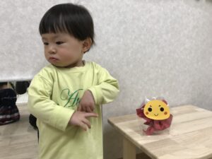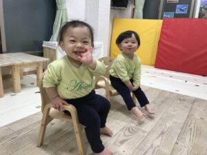 お部屋に入って少し経ってお友達と遊んでいるとすぐに笑顔が戻り安心しました。おもちゃで遊んだり、絵本を見たり、みんな元気いっぱいです。お歩きも安定して、もう元気いっぱいです😉