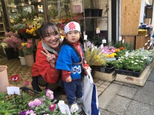 最後に、いつも保育園の玄関に可愛らしい彩りを添えてくれるお花を薦めて下さる「おかざき花店さん」