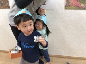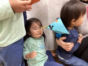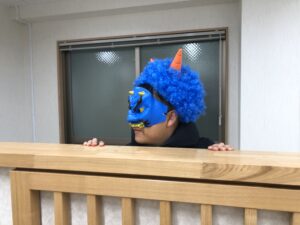 男の子たちは、ヒーローの如く、勇敢に立ち向かって豆を投げつけておりました!去年は泣いていた子も今年は立ち向かっており、かっこよかったです!!