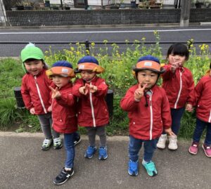 お散歩日和の今日この頃ですね。にじ組のお友だちと世田谷線沿いの「宮の坂」まで歩きました。