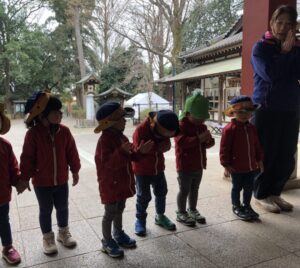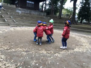 階段を上がり、みんなでお参りもしました。「1年間守ってくださり、ありがとうございました。新しい幼稚園でも頑張ります!」とみんなで言ってきました!!