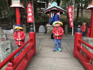 また、宮の坂にある、「世田谷八幡宮」にもお参りに行きました。普段行っている、松陰神社より大きくて広く、「厳島神社」の分社のあり、鯉を見て「何ていうお魚?」「鯉だよ」「こい?」と言う様な会話を何回もしました笑