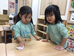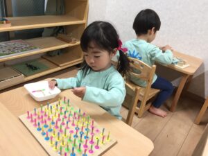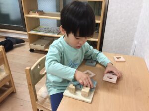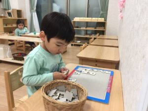 大きくなった喜びは、モンテッソーリのおしごとの時間にも表れています😊。
