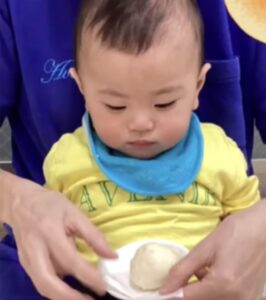 大きなお相撲さんと行うお餅つき、0歳〜2歳児の全園児が本物の杵と臼でつく餅つき大会は特別な思い出です。