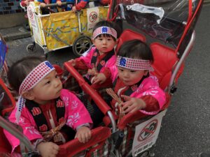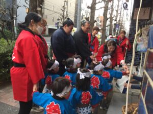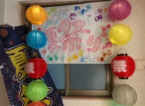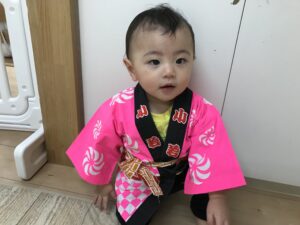 夏祭りはお迎えのお時間に合わせ開催、保護者の方のご負担様を最小限にご参加頂けるように法被や使うものはすべて園でご用意しています。