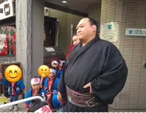 『ご近所のお世話になっているお店などに、お相撲さんとお餅をお渡しに行きました』