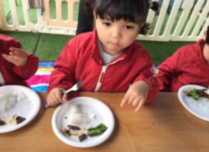 食育にも力を入れています。本格バーベキューコンロを使っての調理を見てもらったり、食材の美味しさを味わってもらえるよう食材は大きめにカットし、しっかり噛んで召し上がってもらったり、特別な体験を経験してもらえるように取り組みます。