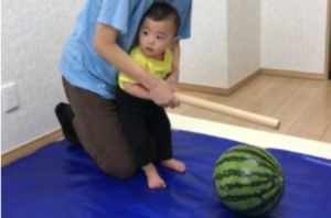 特大のスイカを使って、全園児でスイカ割りを行います🍉