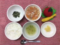 11月10日(月) かゆ 白糸タラとチンゲン菜のくたくた煮 玉ねぎとれんこんのだし煮 みそ汁 フルーツ(りんご)   11月11日(火) おにぎり 牛肉とウィンナ...