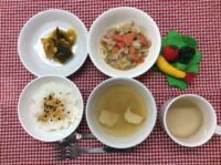 2025.12.23 2歳児 給食12月15日(月) ご飯 鶏肉の生姜照り焼き きゅうりと人参のおかか和え 味噌汁(じゃが芋、長ネギ) 12月16日(火) ご飯 豆腐と野菜の旨煮 さつまいも金平風 ...