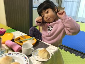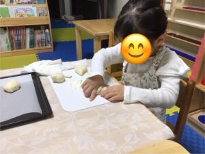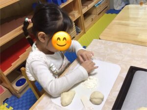 手を使って、丸めたり、成形したり、その後焼き上がってくるパンを見て、とても喜んでくれます。