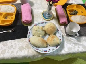 小麦粉だけの丸パンや、米粉を混ぜた米粉パン、またオートミールを生地に混ぜて、楽しく取り組んでいます。