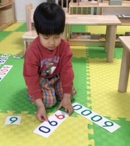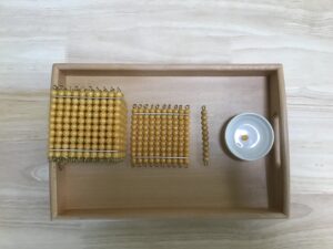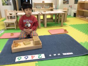 モンテッソーリ教育の数教育には、【ビーズとカードによる加減乗除】を紹介する教具があります。