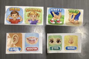 This month’s lesson theme is “Recognize and Play with Your Body.”The children love moving their bodies, so we had fun learning English through songs and games.