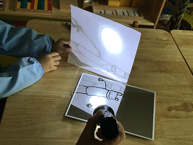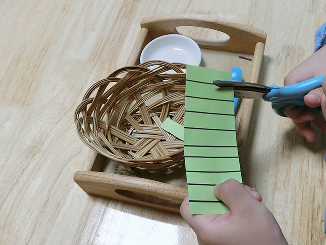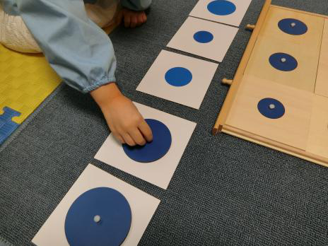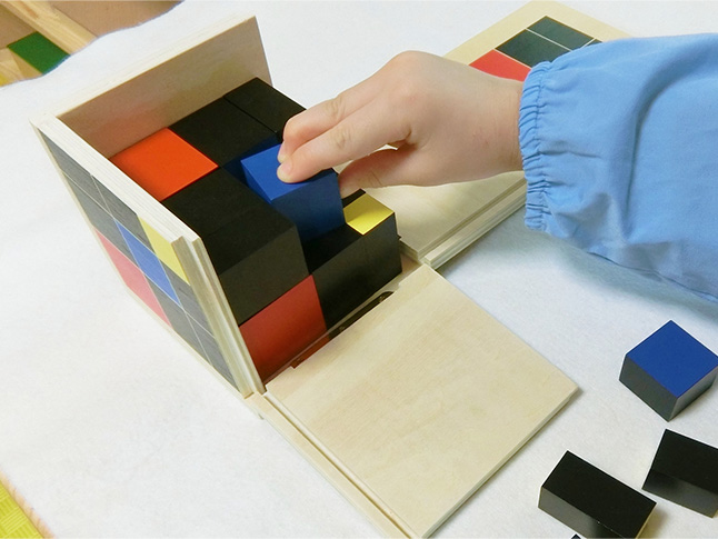 教具を取り扱う作業を通した微細作業は、子ども達が手をたくさん使い、指先の感覚が洗練され、腕の使い方を身につけ、細部まで見る、目の力を育み、目と手の協応性を養います。
